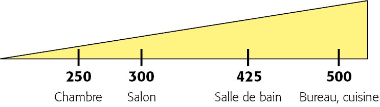 Pensez à bien adapter la puissance d'éclairage à la pièce à éclairer et à l'ambiance recherchée.